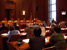 We started with a breakfast in the Grand Entrance Hall of the Supreme Court of Canada. By now it was getting almost routine to be feted in such grand style! As you can see below, the SCC is in a beautiful building west of Parliament Hill. There are only three court rooms inside: one for the Supreme Court, and two for the Federal Court, which deals with issues strictly within federal jurisdiction (eg. patent and maritime laws, civil action against the federal government, etc.). We were very fortunate to have Justice Beverly McLachlin, who will be the next Chief Justice, address our Institute. She had agreed to speak to us before her appointment was announced, so it was a real coup to have her speak with us. A number of teachers, including myself, were able to "address the court" by asking Justice McLachlin a question at the front podium. She handled our questions with the tact and diplomacy one would expect of a Chief Justice designate.