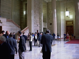We then had a session with the clerks of the Parliament, Paul Belisle and Robert Marleau. We were able to ask many of the questions we had developed over the week (eg. about M.P. pensions and Parliamentary reform) and they answered them candidly and honestly. Mr. Marleau, the clerk of the House of Commons, made an interesting point about the parliamentary form of government. He argued that Canada has a government "in" the Parliament (that is, a government of confidence and accountability), while the Americans have a government "of" the Parliament (that is, a government of negotiation and veto). Both are preferable to a government "despite" the Parliament (eg. Russia), or a government without a Parliament (ie. a dictatorship). That was a succinct and pithy comparison that I will use for a long time.